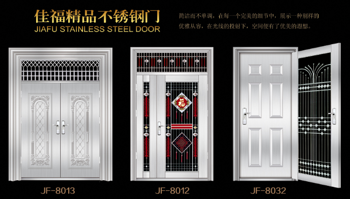 本公司成立于2004年,已有19年的生產(chǎn)進戶門的經(jīng)驗積累。公司現(xiàn)擁有鋼質非標門生產(chǎn)線、標門生產(chǎn)線及不銹鋼門三條生產(chǎn)線,我公司專業(yè)設計、制造、銷售鋼質系列進戶門、防盜門、不銹鋼門等產(chǎn)品,擁有“宇佳?盈福”和“佳有福”、“家福.興隆”三個自主品牌和產(chǎn)品系列。公司引進了先進的生產(chǎn)技術,配置了成龍配套的現(xiàn)代化生產(chǎn)流水線。產(chǎn)品工藝成熟,質量上乘。同時,公司廣納賢才,聚集了一批具有開拓創(chuàng)新精神的各類高級管理和技術人才,建立了一套先進的管理模式。